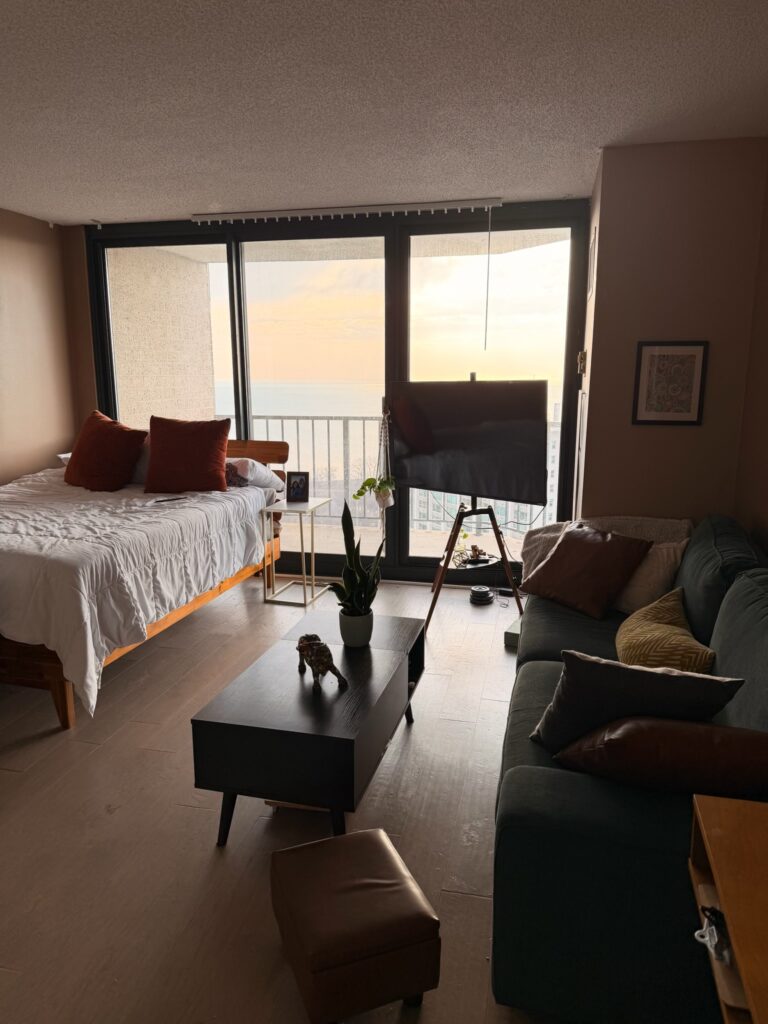 Studio Apartment No. 3309 for Rent – Available July 1st 2026. Bright open layout with great natural light (South/East view of City and Lake ). Conveniently located near shopping, restaurants, and public transportation.